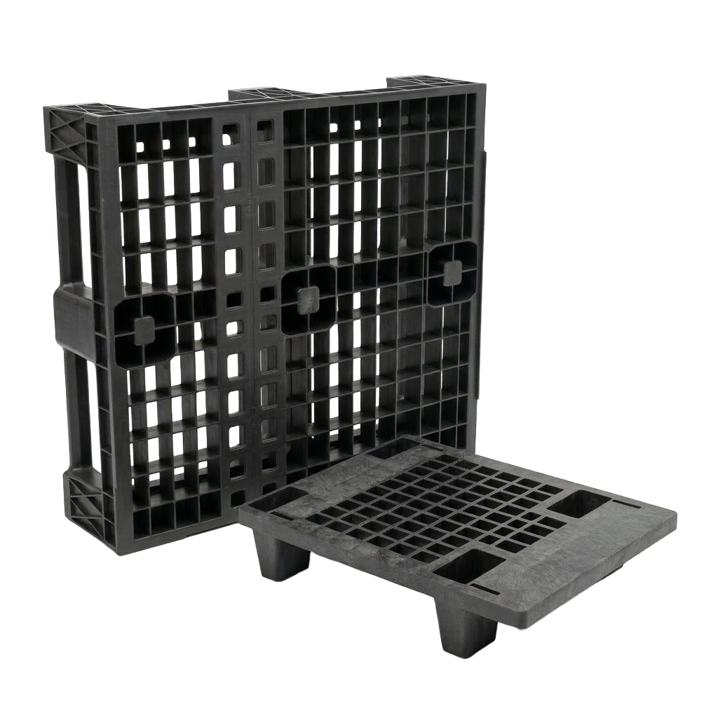 Palet de plástico encajable diseñado para ahorrar espacio en almacén y transporte cuando está vacío. Su sistema permite apilar los palets uno dentro de otro, reduciendo el volumen ocupado y optimizando la logística de retorno. Ideal para distribución y cadenas de suministro con alta rotación.