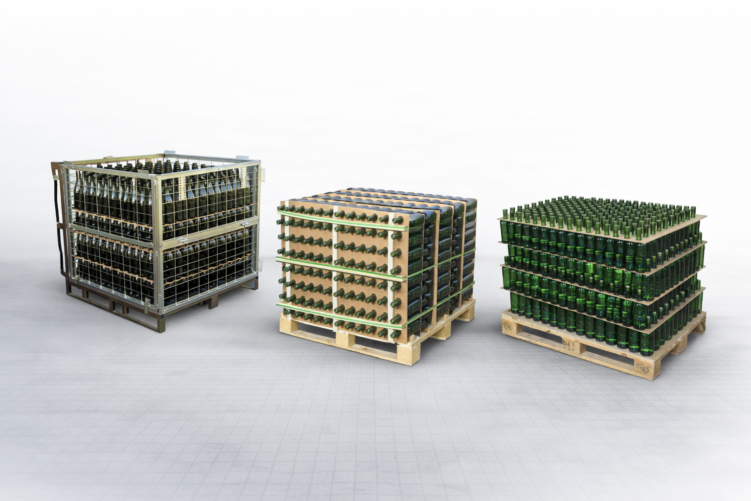 Embalajes para bodegas en jaula metálica reforzada para almacenamiento y logística de botellas